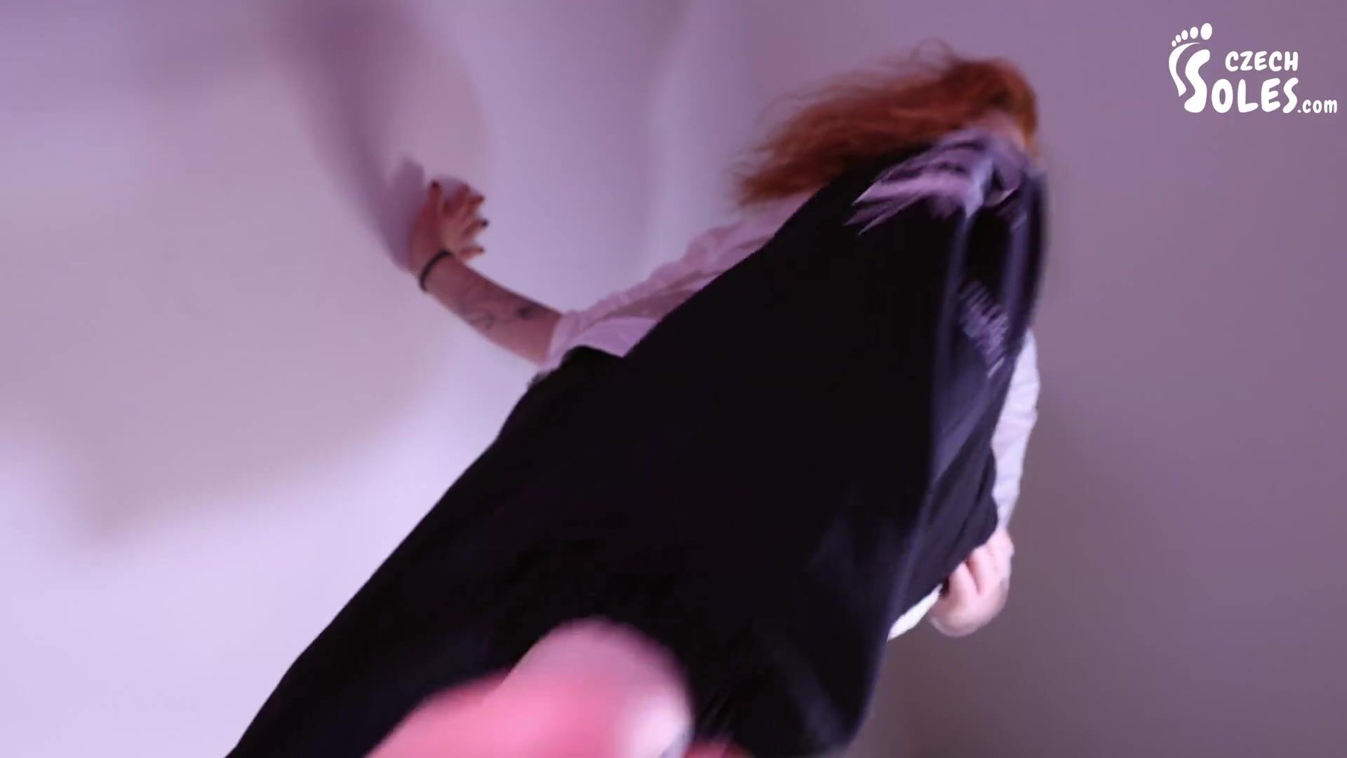 Ginger Giantess Plays with a Tiny Man Using Her Feet