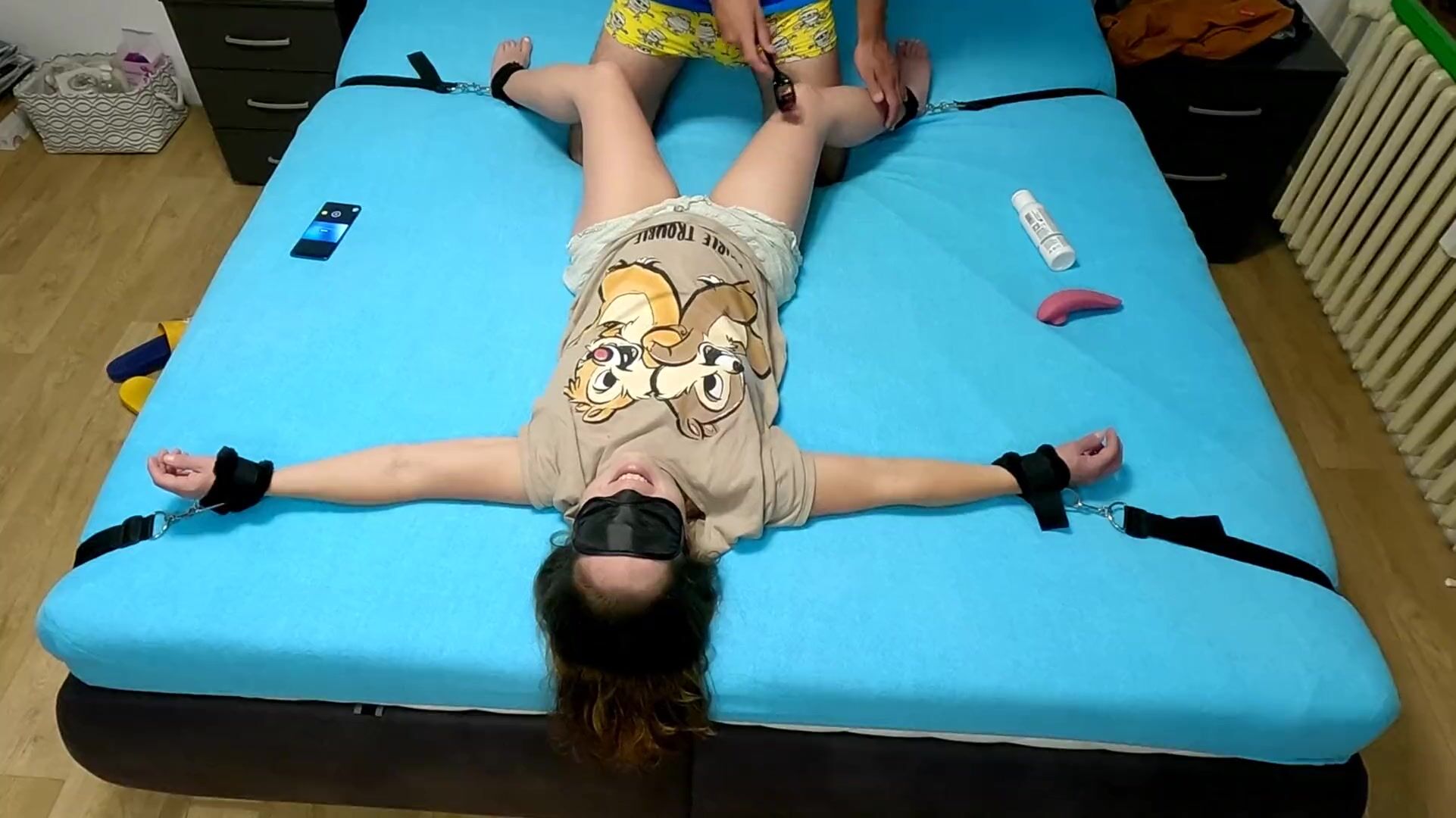 Tied Girl with Tattoos Gets Her Pussy Tickled