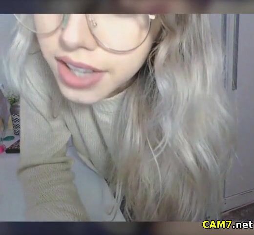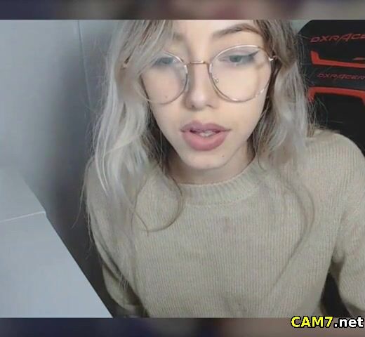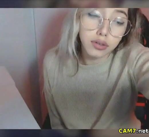 Petite Blonde with Glasses fingering her pussy live on cam