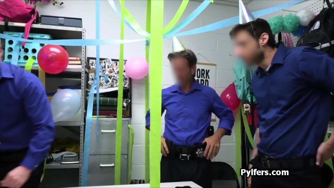 Surprise gangbang party at the security office
